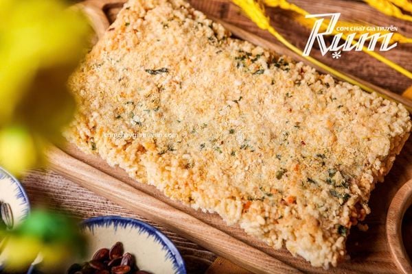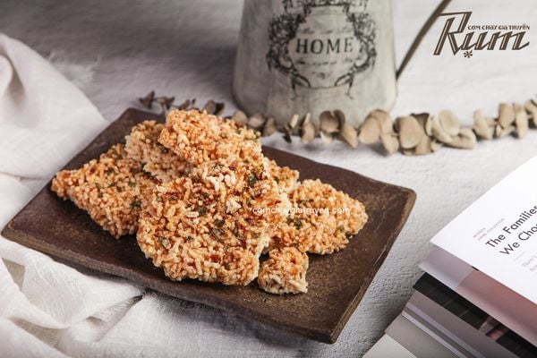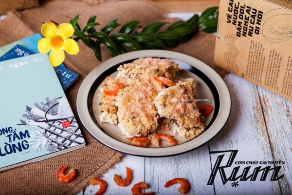 "Người-bạn" này có một màu vàng-ươm bắt mắt, ai thoáng nhìn cũng thấy mê-mẩn thần-hồn. Đưa tay chạm vào thì cảm giác đầy-đặn, miếng nào miếng nấy như chứa đựng hết tinh-hoa ẩm thực Sài-Gòn xưa. Mới nhâm-nhi thử là đã thấy bao-ghiền, vì hạt cơm giòn-rụm, hoà quyện cùng nước sốt gia truyền đậm-đà với đủ loại topping gọi mời: nào là chà bông từ thit ức gà phi lê hảo hạng, tép sấy tươi giòn, hay chà bông tôm đất đặc sản đất Mũi, chà bông từ thịt cá lóc bông nhiều dinh dưỡng. Ai thích vị nào có vị đó, không cần phải đắn đo. Tận hưởng hương vị mê-ly đó rồi bất giác gật-gù, tự nhủ với lòng rằng: trên đường đi chơi lễ sắp tới chắc chắn không thể thiếu "người-bạn tâm giao” Cơm-Cháy-Rụm. Có RỤM là tự nhiên cái an-yên cái bụng liền, đủ sức đi chơi ngay.