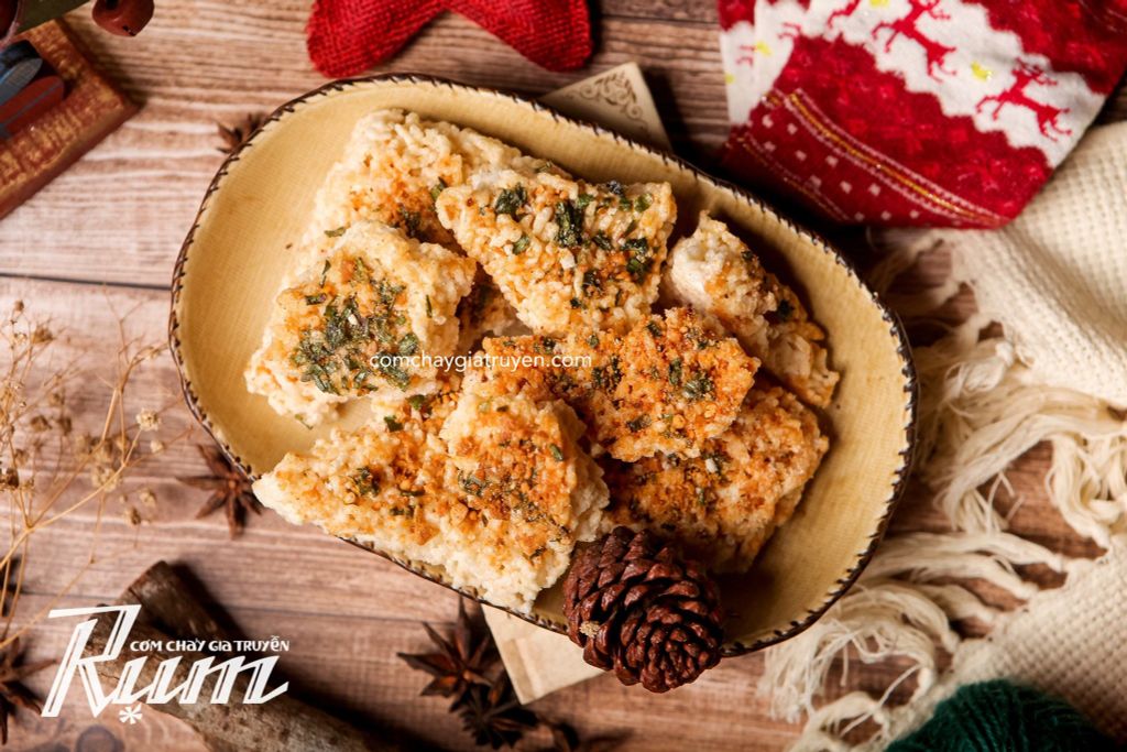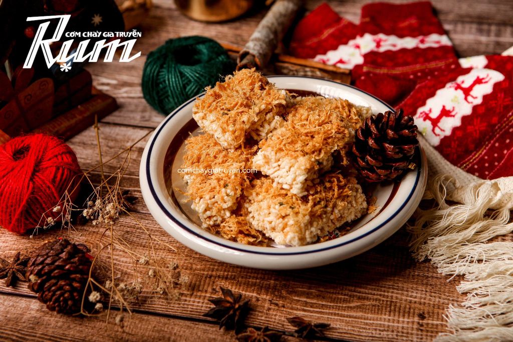 Giữa tiết trời se-lạnh mùa Noel, còn gì tuyệt vời hơn là được nhâm nhi từng hạt Cơm-Cháy-Truyền-Thống quyện trong nước-sốt đậm đà? Cắn một miếng cơm vàng-ruộm là như hưởng trọn vị ngon gia-truyền chẳng nơi đâu sánh nổi. Đến khi thưởng-thức xong vẫn thấy thòm-thèm, chỉ mong được tặng quà Giáng-sanh là Rụm để ăn cho thoả-thích.
