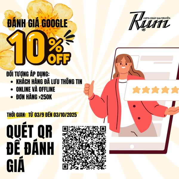 Khách hàng đã lưu thông tin tại RỤM, có hoá đơn trên 250k, chỉ cần gửi đánh giá Google theo link: