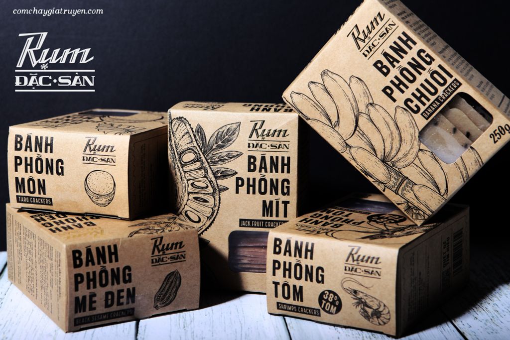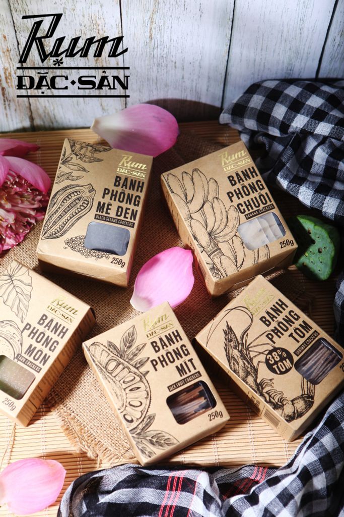 Thương mời quý khách cùng trải nghiệm trọn bộ sáu hương vị đặc sắc mà RỤM mang tới – từ vị tôm đậm đà, béo ngọt, đến hương môn, mít, chuối, mè đầy mới lạ. Mỗi miếng bánh là một câu chuyện riêng, vừa dân dã, vừa mới lạ, vừa giòn tan lại vừa dậy vị, chắc chắn sẽ khiến quý khách ăn một lần là nhớ mãi, ăn rồi chỉ muốn tìm lại hương vị thân quen này hoài thôi.