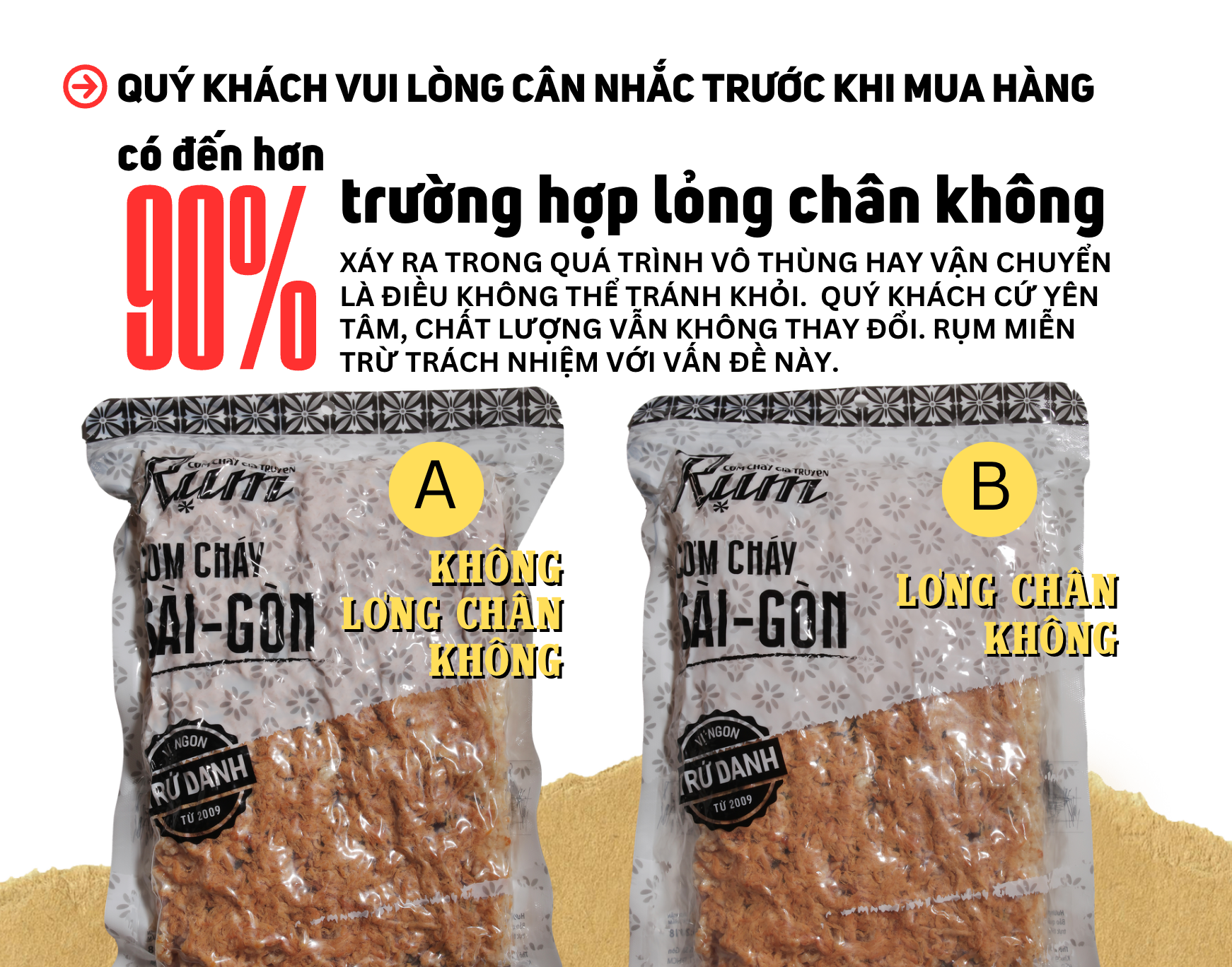 Cơm cháy RỤM luôn đề cao vệ sinh an toàn thực phẩm, không chỉ trong nguyên liệu mà còn ở cách chế biến, đóng gói và phục vụ khách hàng.