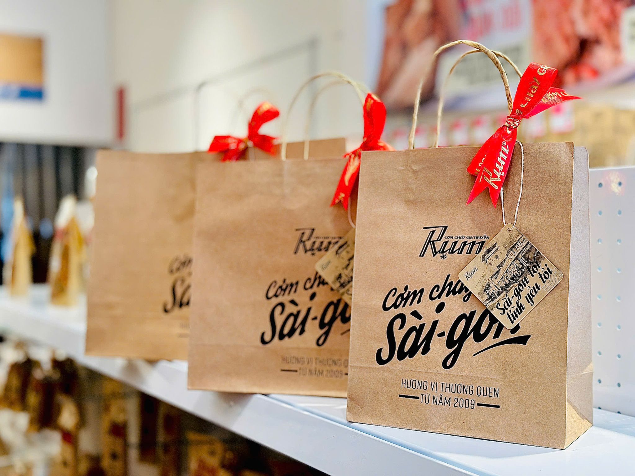 Túi giấy Kraft đỏ đựng 2 hộp cơm cháy RỤM không chỉ gửi gắm yêu thương và sự chăm sóc mà còn tạo nên những trải nghiệm thú vị cho người nhận. Từ việc mở túi giấy đến thưởng thức món ăn ngon, mọi khoảnh khắc đều mang đến sự bất ngờ và hạnh phúc.